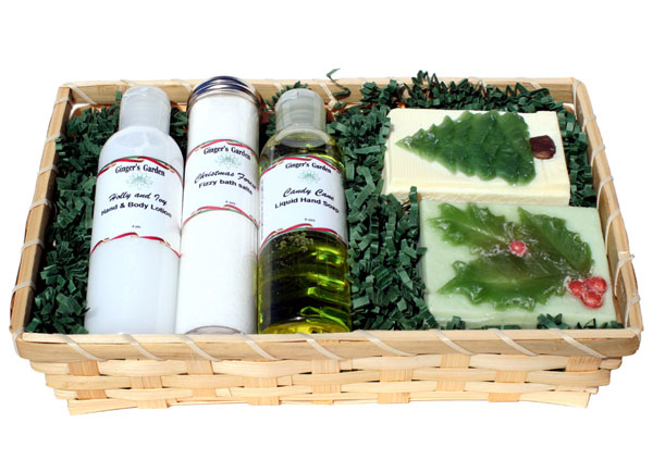 Christmas Holiday Artisan Gift Basket, Lotion, Hand Soap, Bath Salts
