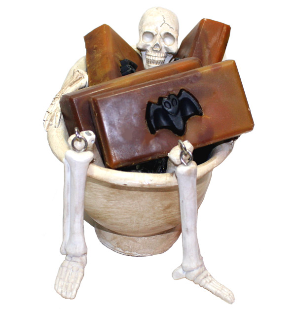 Halloween Handmade Artisan Soap has black bats. This soap lathers wonderfully and will leave you softly scented. It is made with the cold-process method and cured for a minimum of 6 weeks. This soap is long-lasting and made from natural carrier oils. It will give you a gentle, cleansing experience. Ideal for the Halloween, Fall or Autumn season. The scent blend is oak barrel cider with patchouli, earthy sandalwood with light floral notes and musk.
